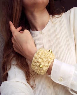 Ešte nedávno som si myslela, že mojou záľubou bude háčkovanie topánočiek, čiapok pre tých najmenších, ale moja netrpezlivá povaha opäť nesklamala. Naozaj sa nenájde nič čo by ma bavilo dlhšie ako tri mesiace ? To sa len tak sama seba pýtam ;). Takže tu sú moje nové výtvory, zatiaľ tento trend na Slovensko ešte nedorazil, ako vieme vždy je to tu o rok pozadu, ale myslím že budúci rok to vypukne (a možno nedorazí, ako mnoho pekných vecí a trendov ), trend háčkovaných a pletených náramkov, inak ak sa mýlim a už to tu je a videli ste nejakú lady s niečím podobným tak ma opravte, lebo ja fakt chodím veľmi málo medzi ľudí :-D. Si poviete aha cvočky, tie už sú na ústupe, pravdupovediac nemala som veľmi rada tento trend, ale snažila som sa ich pojať málinko inak